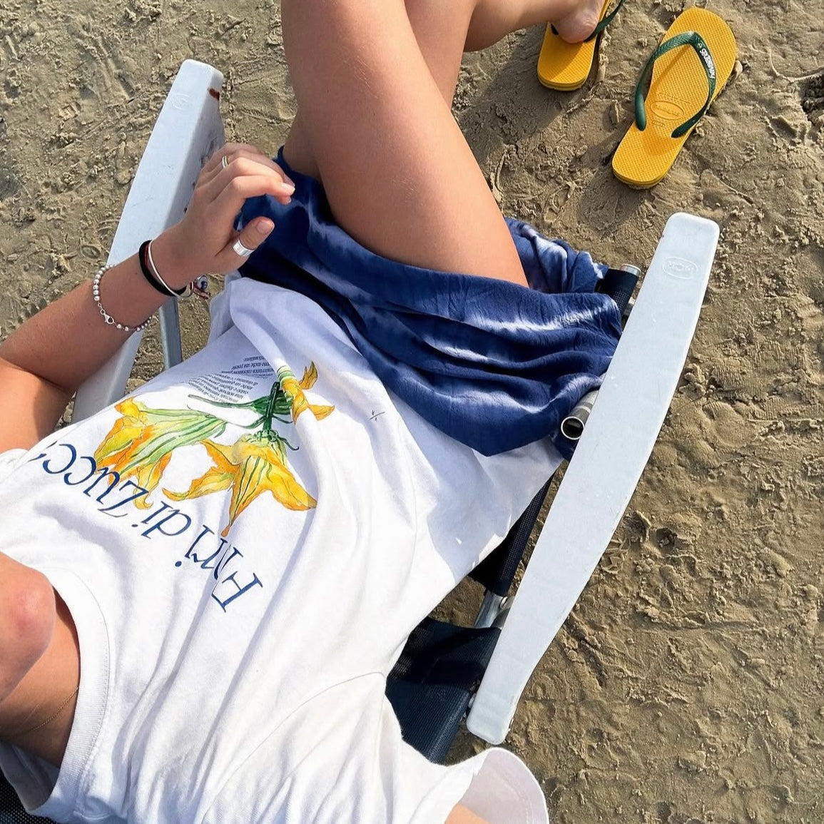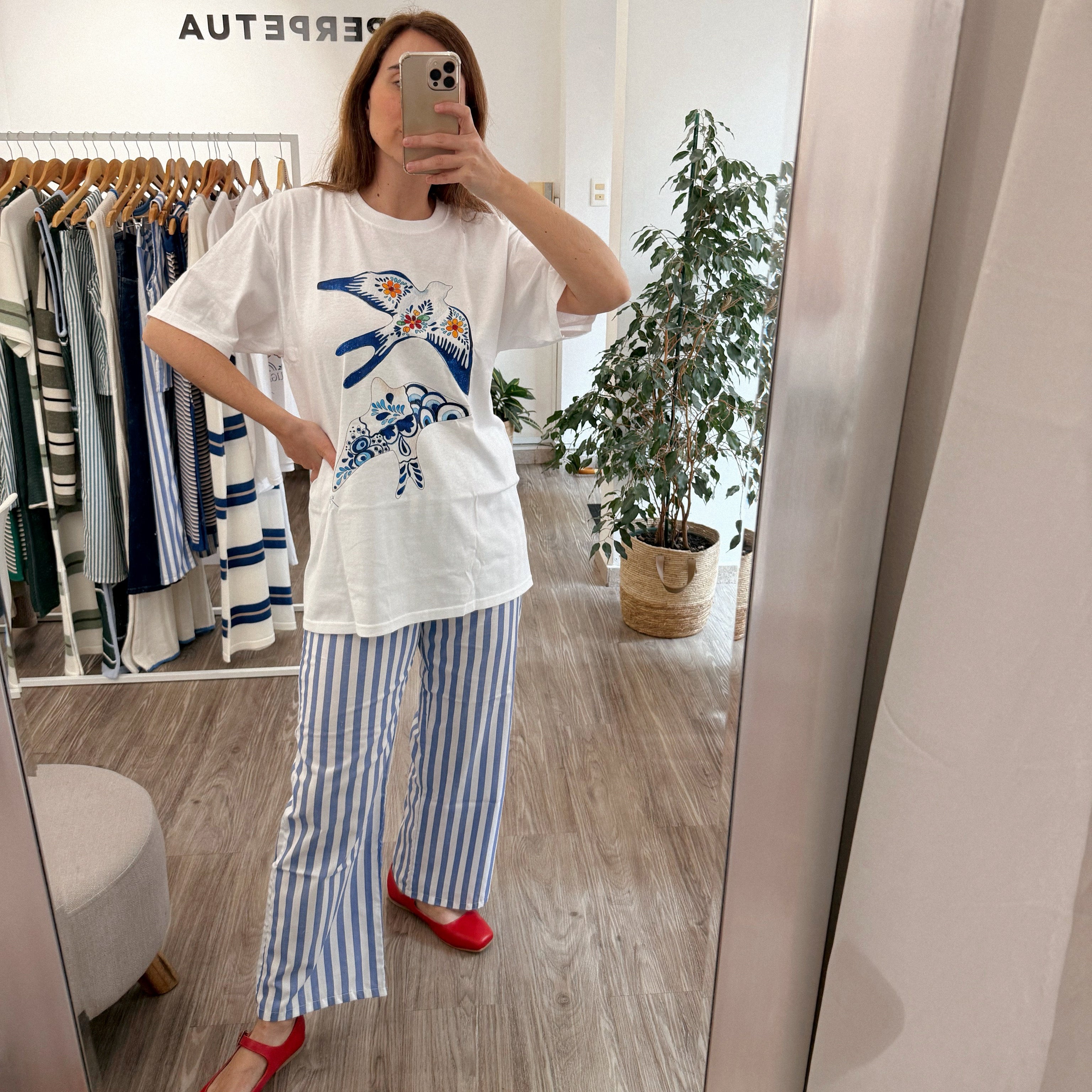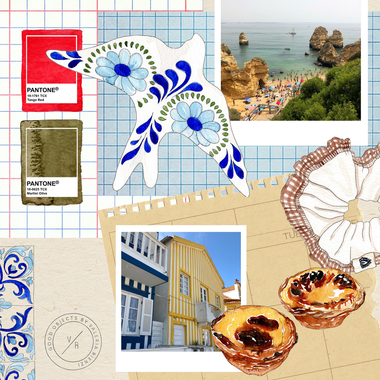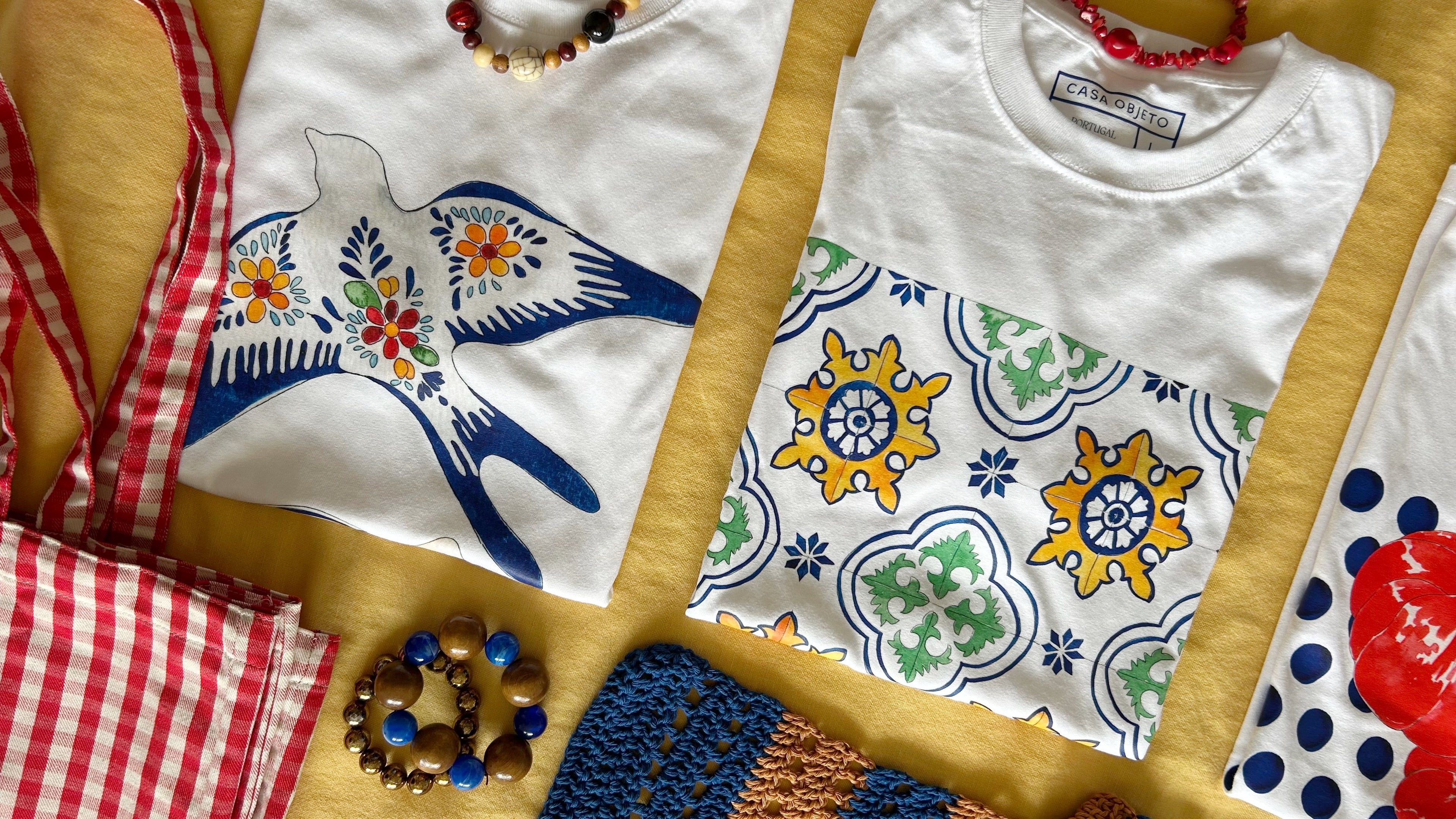 Inspirada en un viaje a Portugal, que pasé por Oporto, Lisboa y Lagos, y por los vecinos españoles. Ésta colección de remeras tiene un poco de todo, azulejos y golondrinas de cerámica típicas portuguesas, las frutas que podemos encontrar en Portugal y una nueva versión de tomates con lunares donde la inspiración es un poco más española.