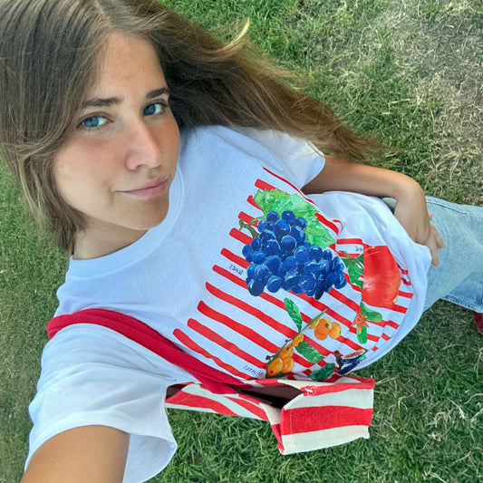 Inspirada en un viaje a Portugal, que pasé por Oporto, Lisboa y Lagos, y por los vecinos españoles. Ésta colección de remeras tiene un poco de todo, azulejos y golondrinas de cerámica típicas portuguesas, las frutas que podemos encontrar en Portugal y una nueva versión de tomates con lunares donde la inspiración es un poco más española.